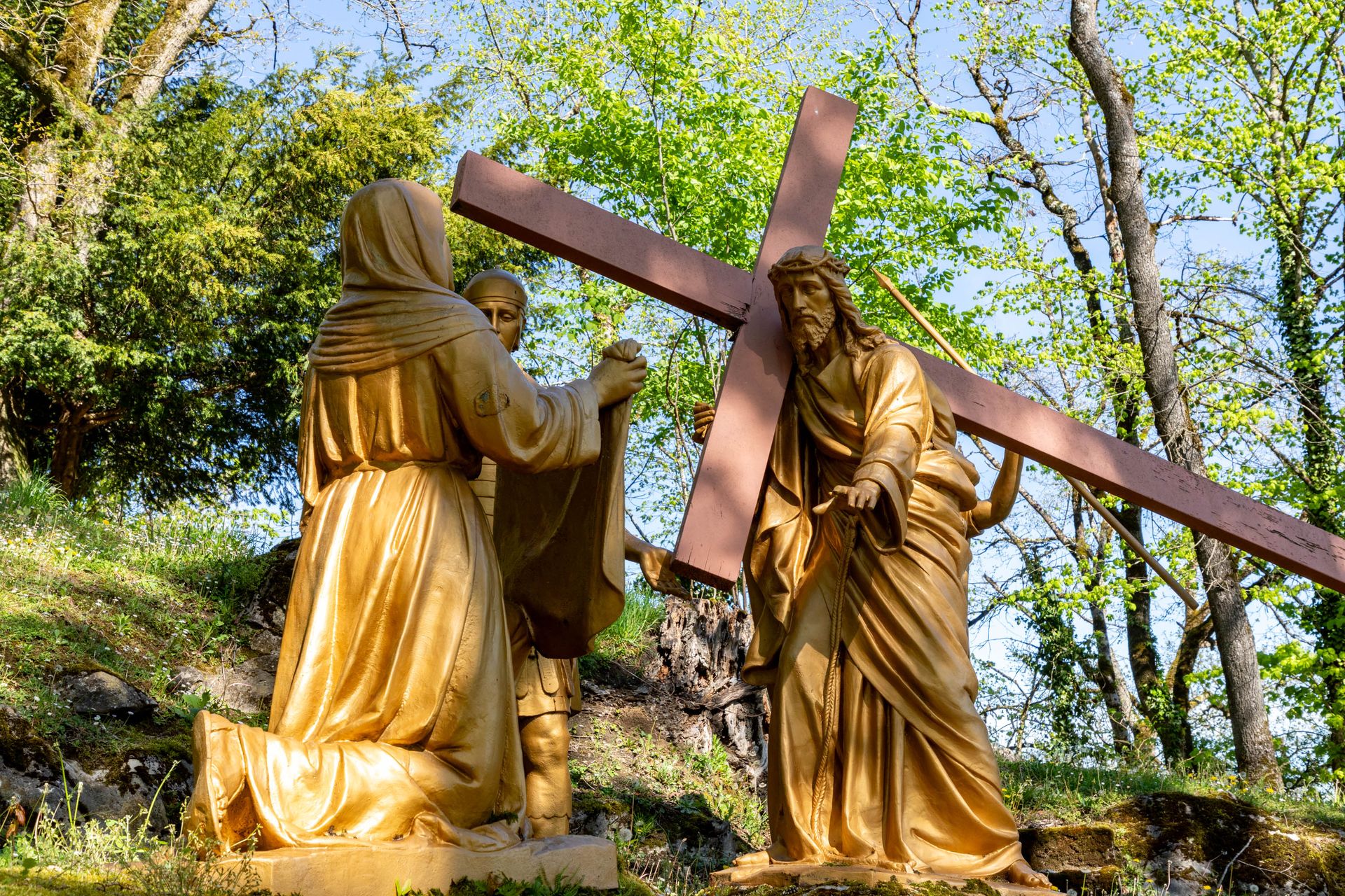 Deux Chemins de Croix, aux styles différents, nous invitent à cette démarche que nous pouvons accomplir de manière personnelle (des livrets sont disponibles à la librairie) ou bien accompagnés par un membre de l’équipe d’accueil du Sanctuaire.